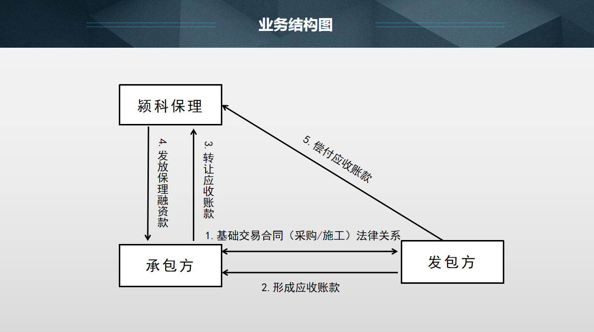 1、正向保理:正向保理以買賣雙方真實發(fā)生的交易作為背景,賣方提供交易產(chǎn)生的應收賬款基本憑證、發(fā)票、合同等相關資料,由賣方發(fā)起保理融資申請,將應收賬款轉讓給潁科保理,潁科保理向其提供應收賬款賬戶管理、應收賬款催收、應收賬款融資等一系列綜合性金融服務。